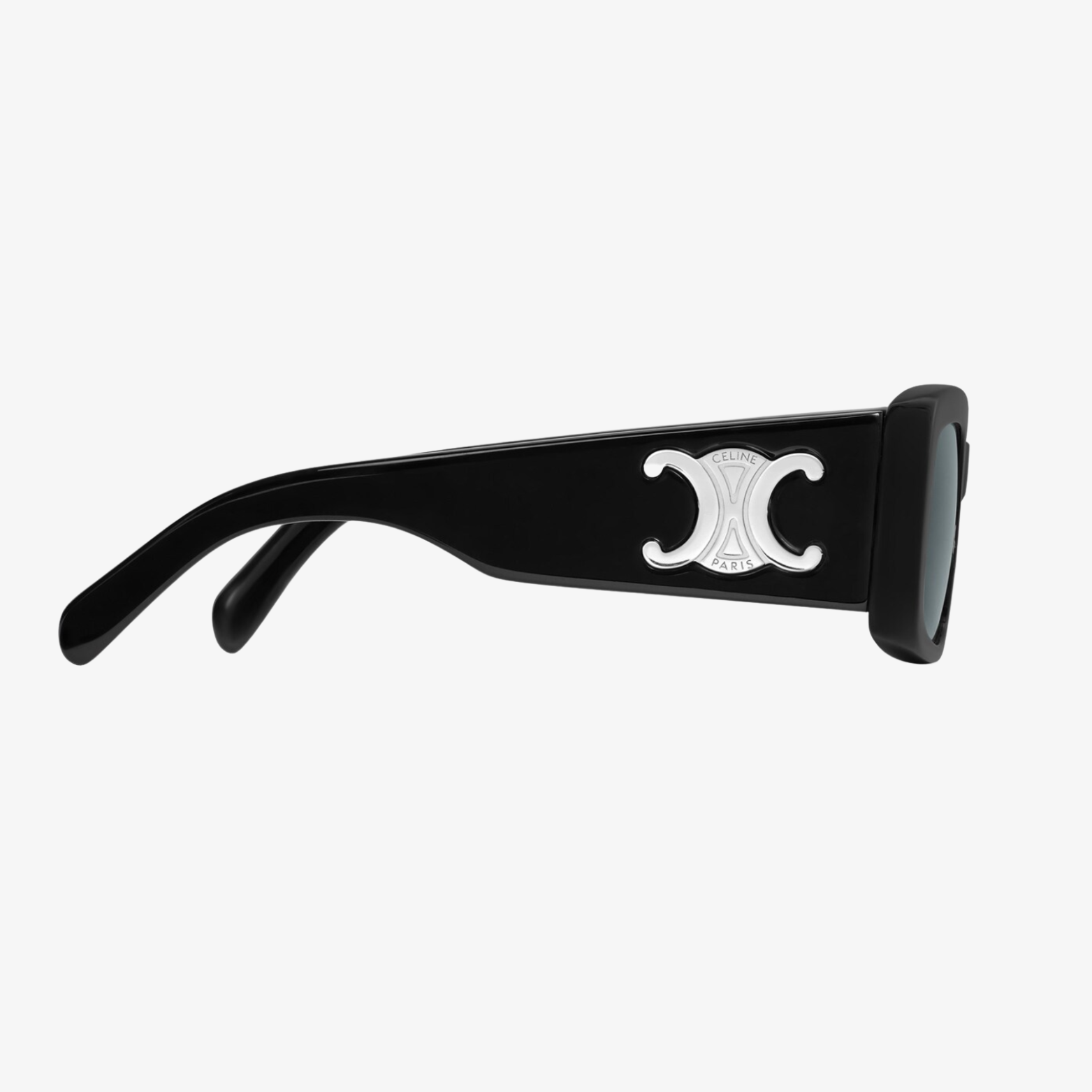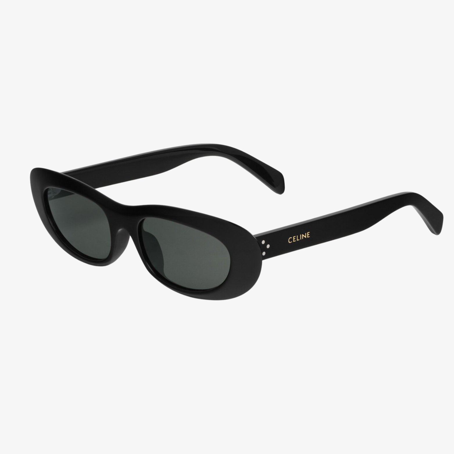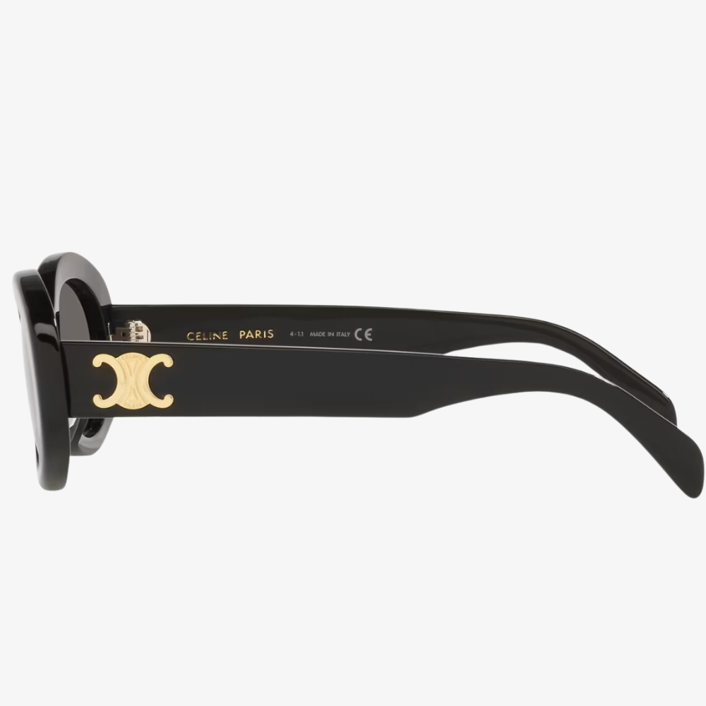 TEMPLE LENGTH 5.7 IN LENS WIDTH 2.1 IN NOSE BRIDGE LENGTH 0.7 Acetate Frame Cat Eye Frame Smoke Lenses Protects from UVA and UVB 3 DOTS AND CELINE SIGNATURE ON TEMPLES