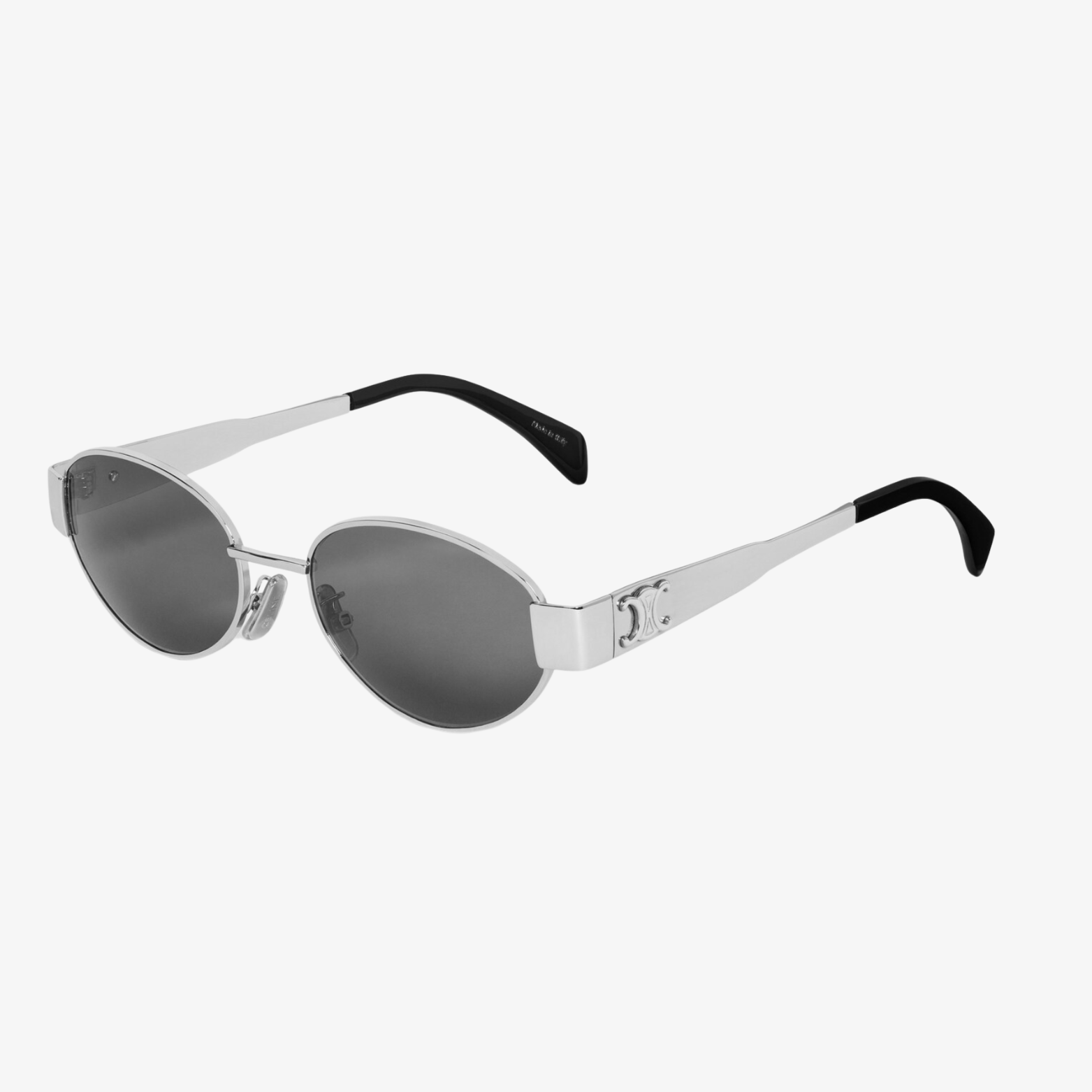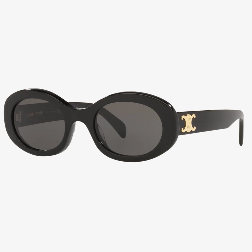 TEMPLE LENGTH 5.3 IN LENS WIDTH 2.1 IN NOSE BRIDGE LENGTH 0.7 IN Metal Frame Oval Frame Smoke Lenses Protects from UVA and UVB Triomphe Signature on temples