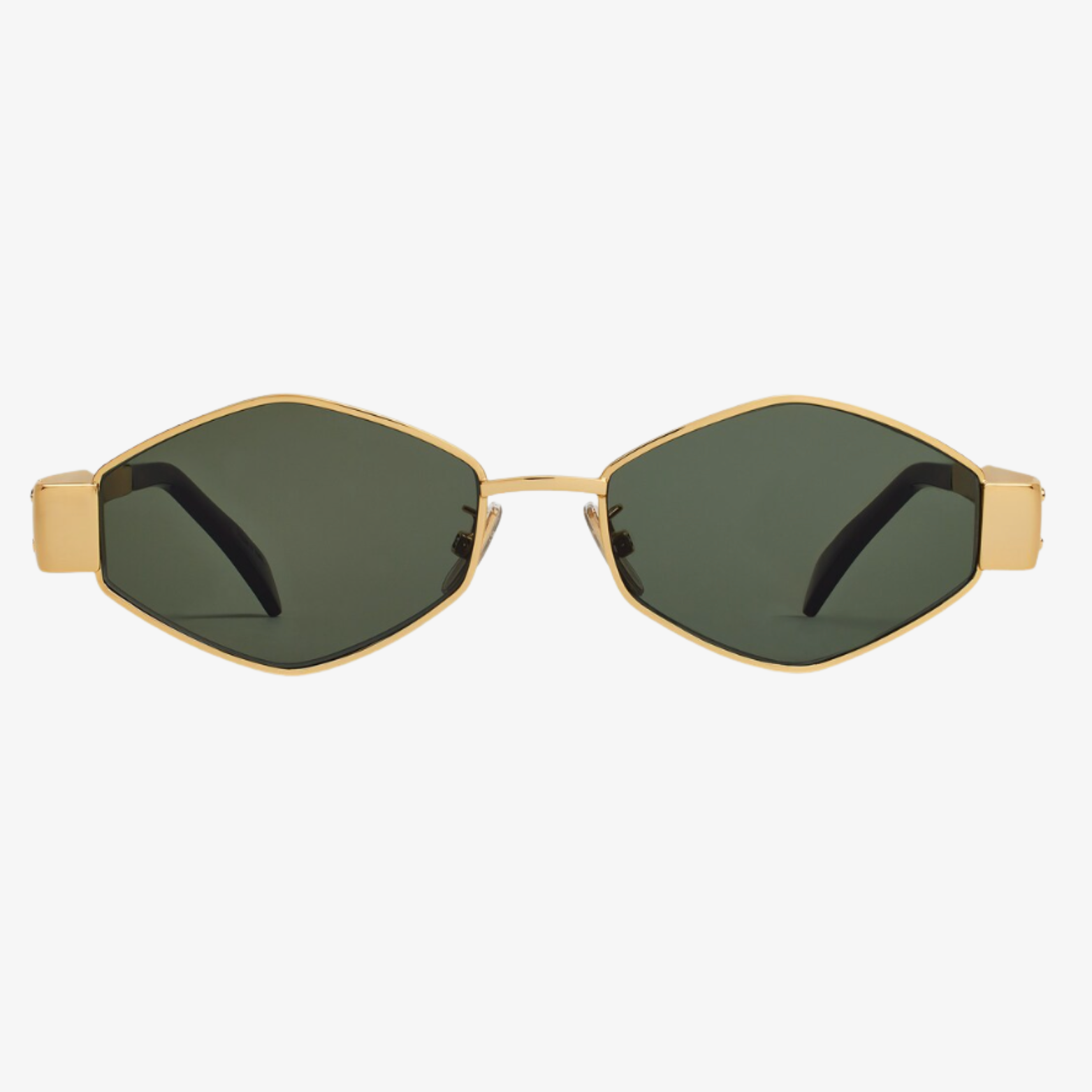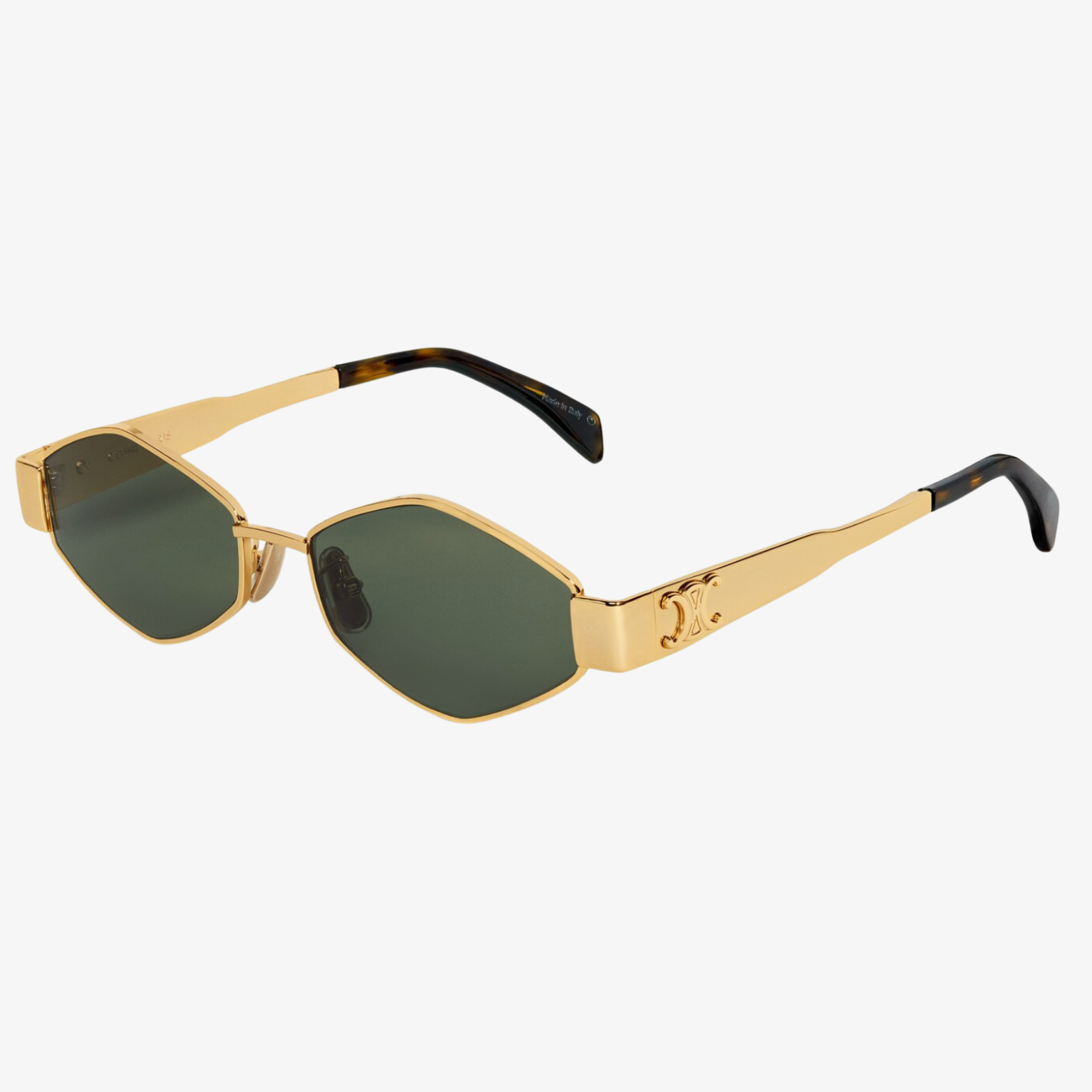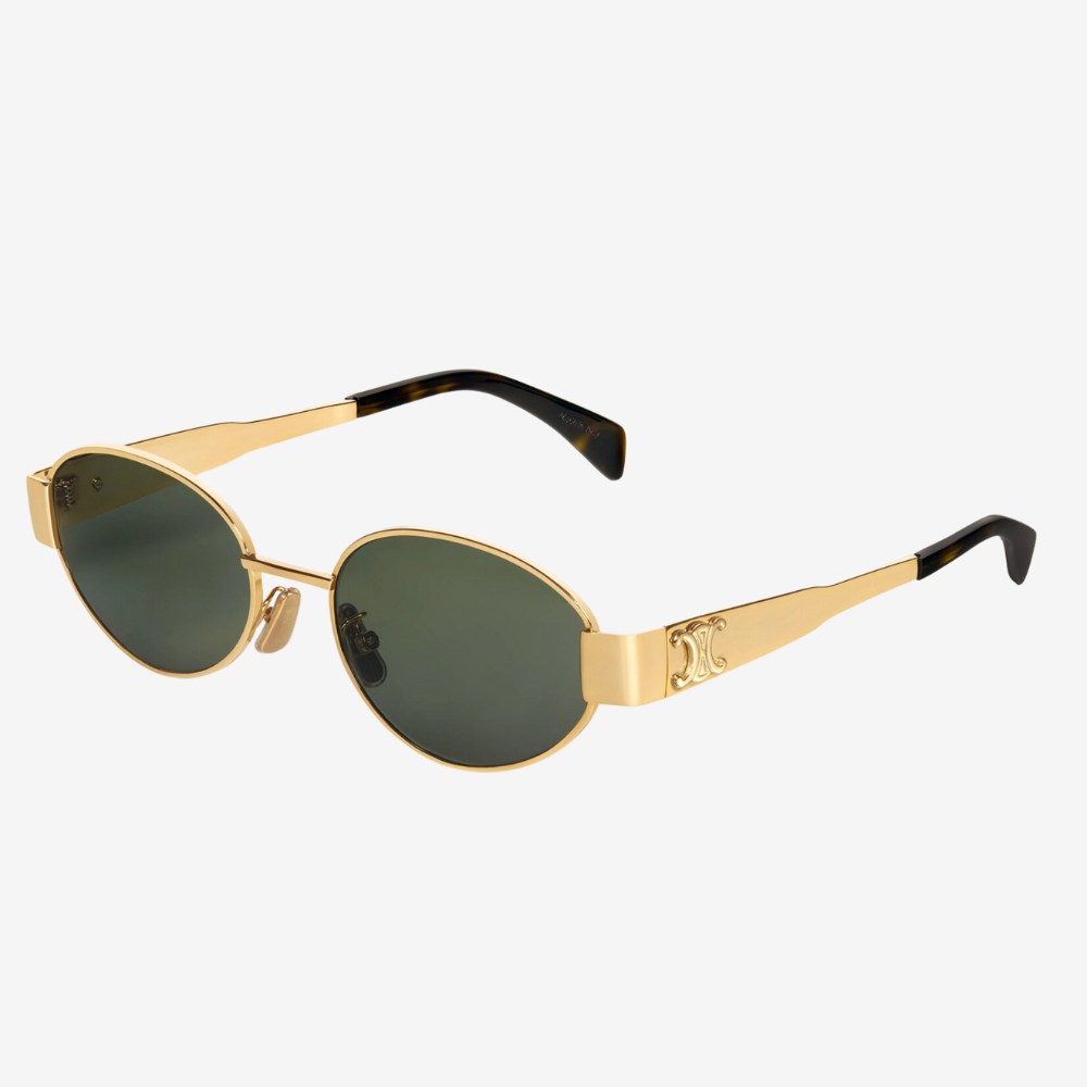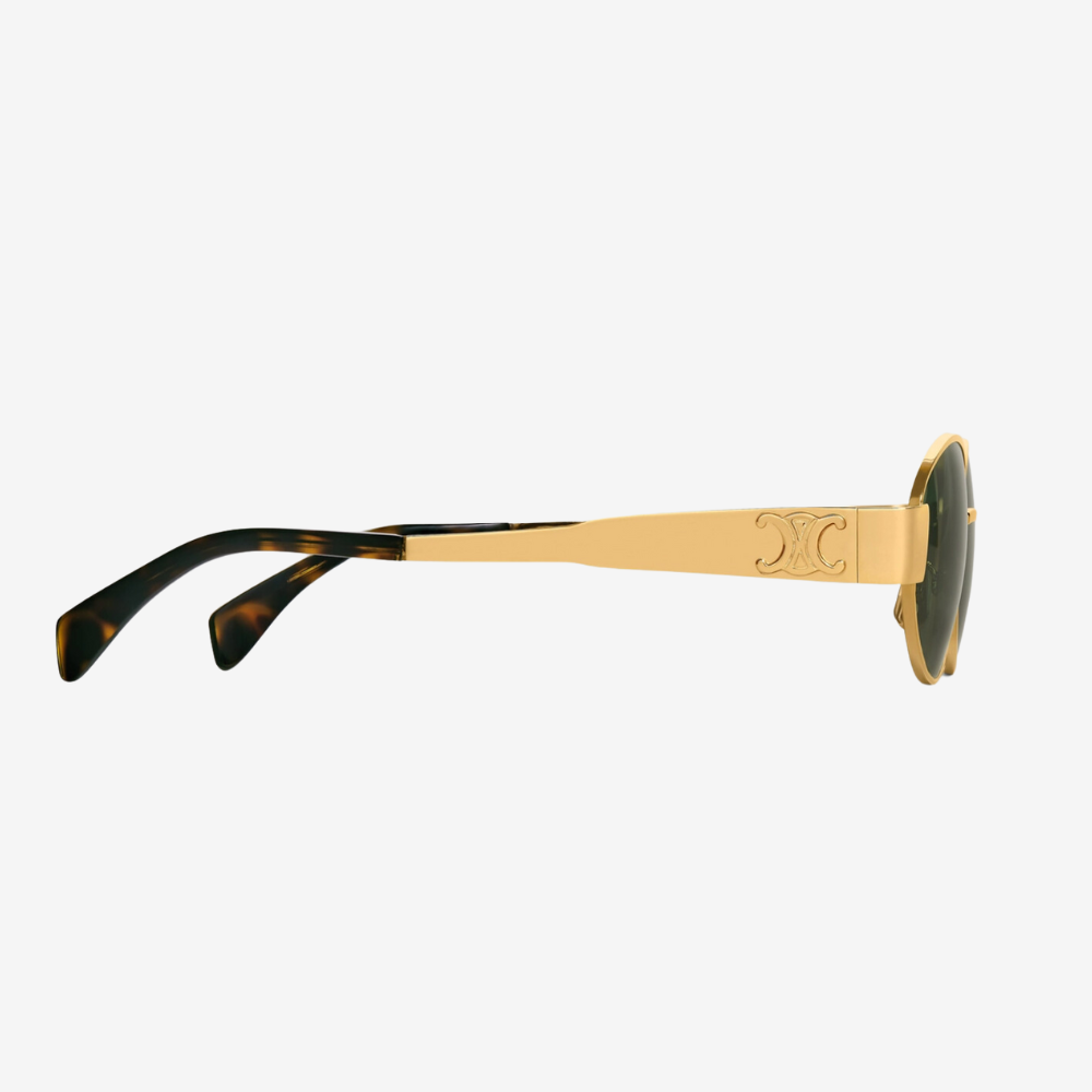 TEMPLE LENGTH 5.3 IN LENS WIDTH 2.1 IN NOSE BRIDGE LENGTH 0.6 IN Metal Frame Green Lenses Triomphe Signature on temples