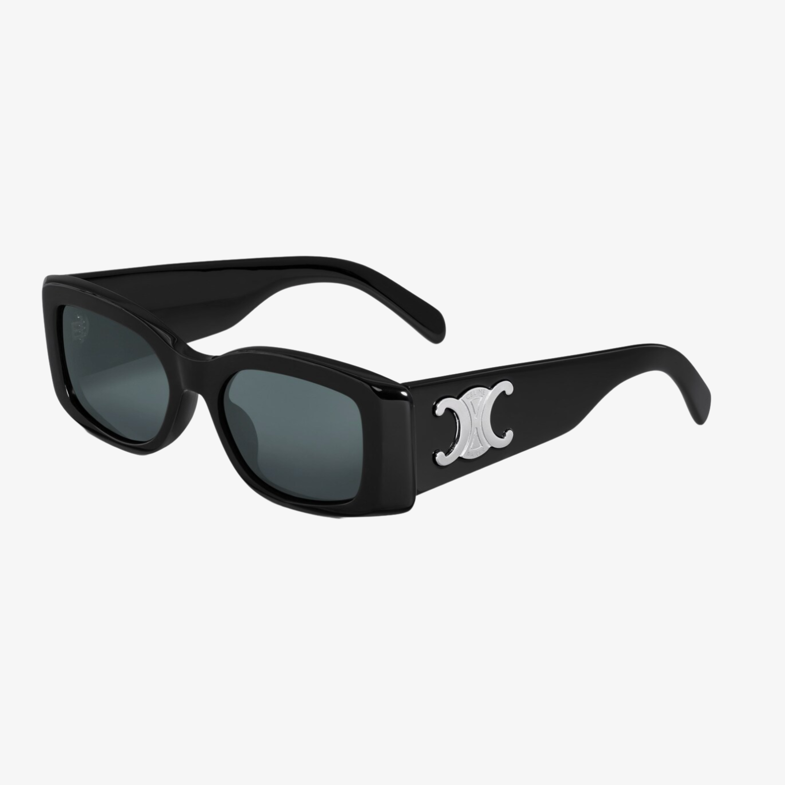 TEMPLE LENGTH 5.3 IN LENS WIDTH 2.1 IN NOSE BRIDGE LENGTH 0.7 IN Acetate Frame Rectangular Frame Smoke Lenses Protects from UVA and UVB Triomphe XL Signature on temples