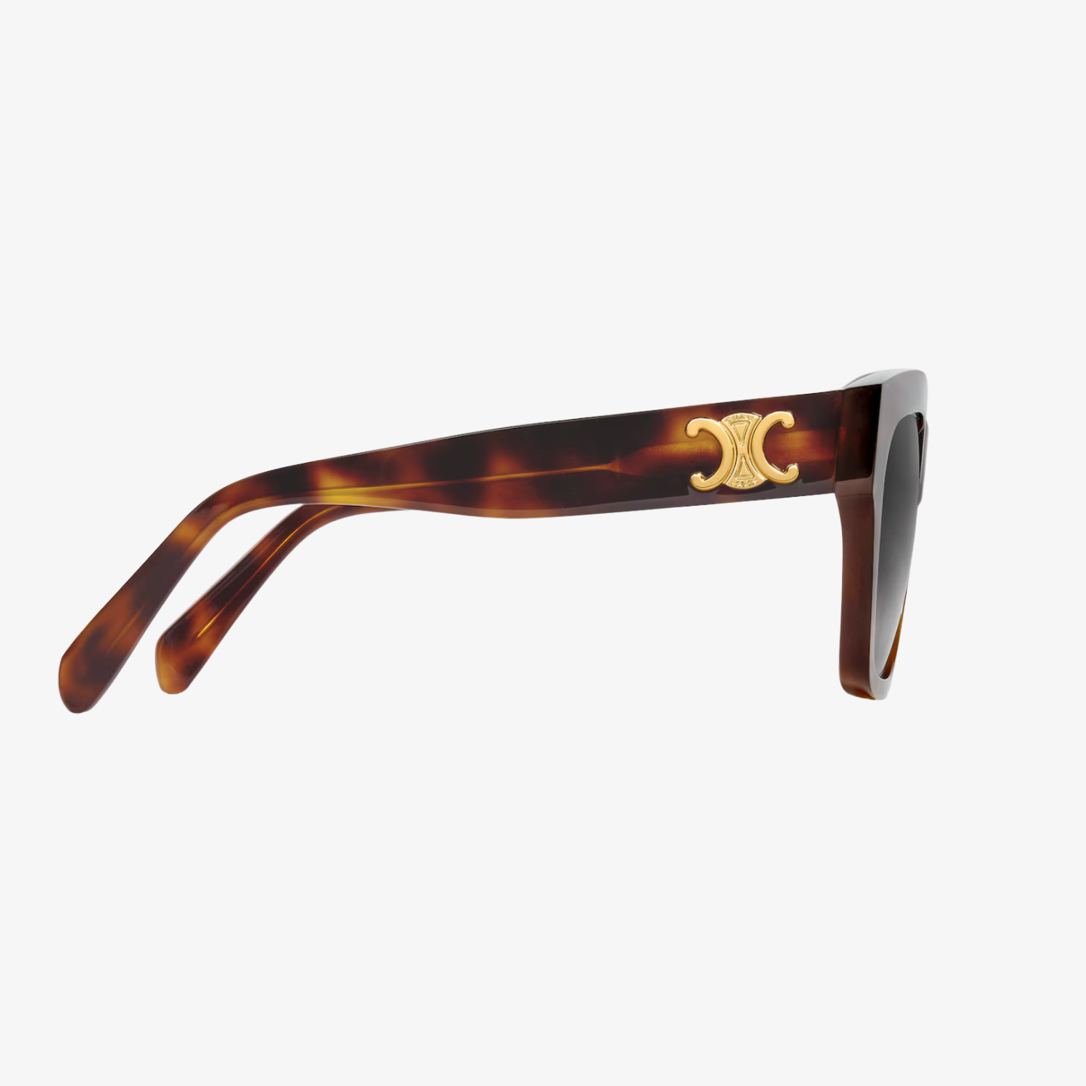 TEMPLE LENGTH 5.5 LENS WIDTH 2.2 IN NOSE BRIDGE LENGTH 0.7 IN Acetate Frame Cat Eye Frame Gradient Brown Lenses Protects from UVA and UVB Triomphe Signature on temples