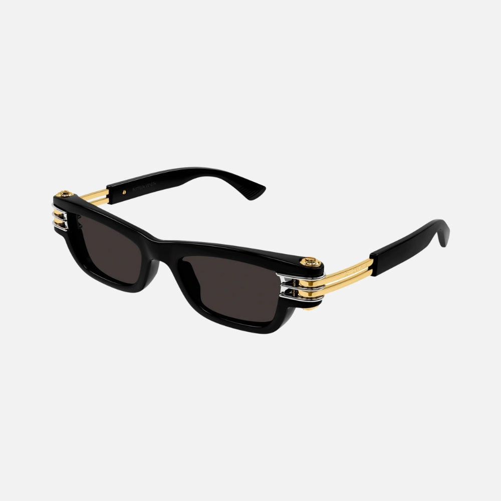 Brand: Bottega Veneta Model: BV1308S Color Code: 001 Lens Size: 50 mm Gender: Unisex Size: Small (S) Frame Color: Black Lens Color: Grey Frame Material: Acetate (Plastic)