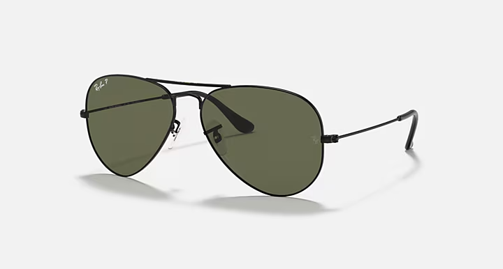 Brand: Ray-Ban Product: Sunglass Gender: Mens, Womens Frame Color: Black Frame Shape: Aviator Frame Material: Metal Lens color: Green Lens Features: Polarized