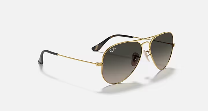 Brand: Ray-Ban Product: Sunglass Gender: Mens, Womens Frame Color: Gold Frame Shape: Aviator Frame Material: Metal Lens color: Grey Gradient