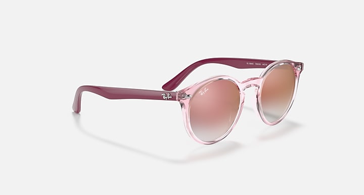 Model code: RB9064S 7052V0 44-19 Brand: Ray-Ban Product: Sunglass Gender: Mens, Womens Frame Color: Polished Transparent Pink Frame Shape: Phantos Frame Material: Metal Lens color: Clear Gradient Red Mirror Red Size: (medium) Treatment: Gradient - Mirror