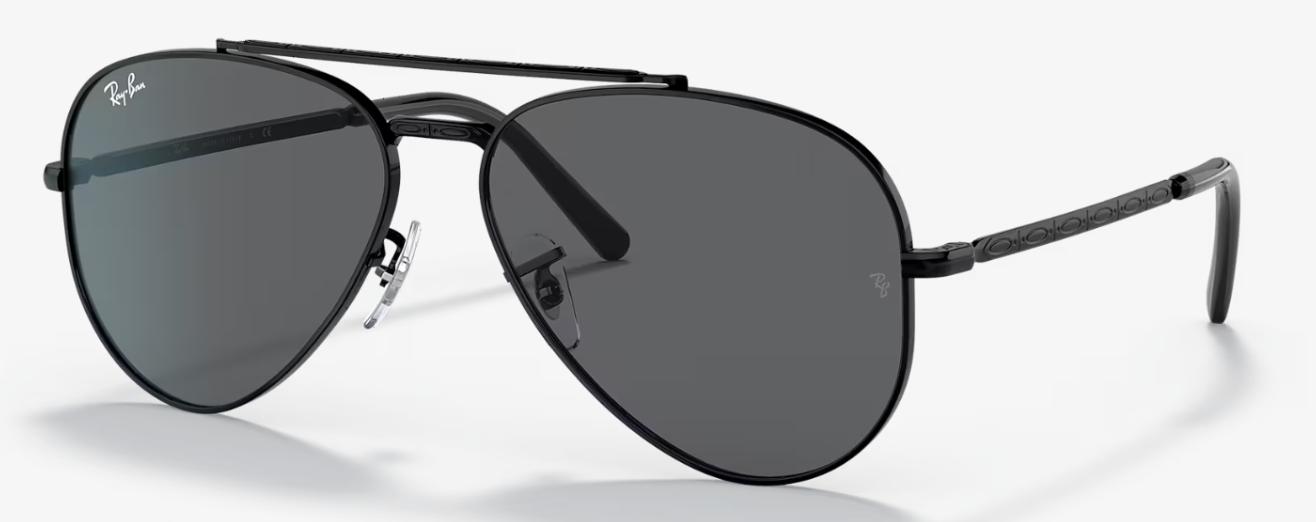 Model: RB3625 New Aviator UPC: 8056597650304 Shape: Pilot Frame material: Metal Frame colour: Black Lens material: Crystal Lens Technology: Classic Lens color: Dark Grey Lens height: 53.8
