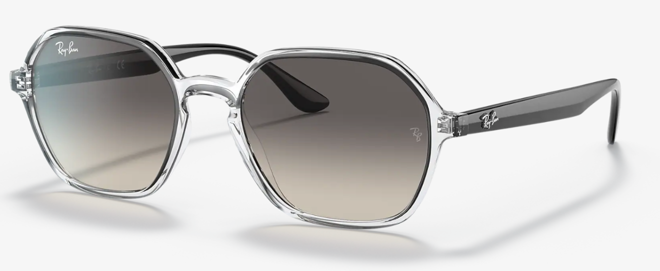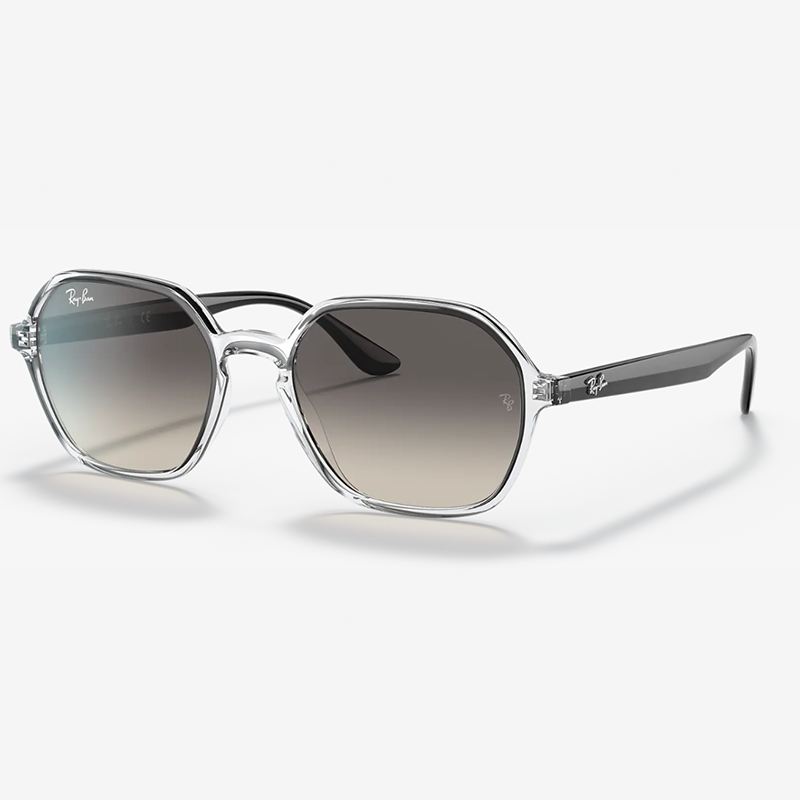 Model: RB4361 UPC: 8056597536073 Shape: Irregular Frame material: Injected Frame colour: Transparent Lens material: Polycarbonate Lens Technology: Gradient Lens color: Grey Gradient Lens height: 43.9