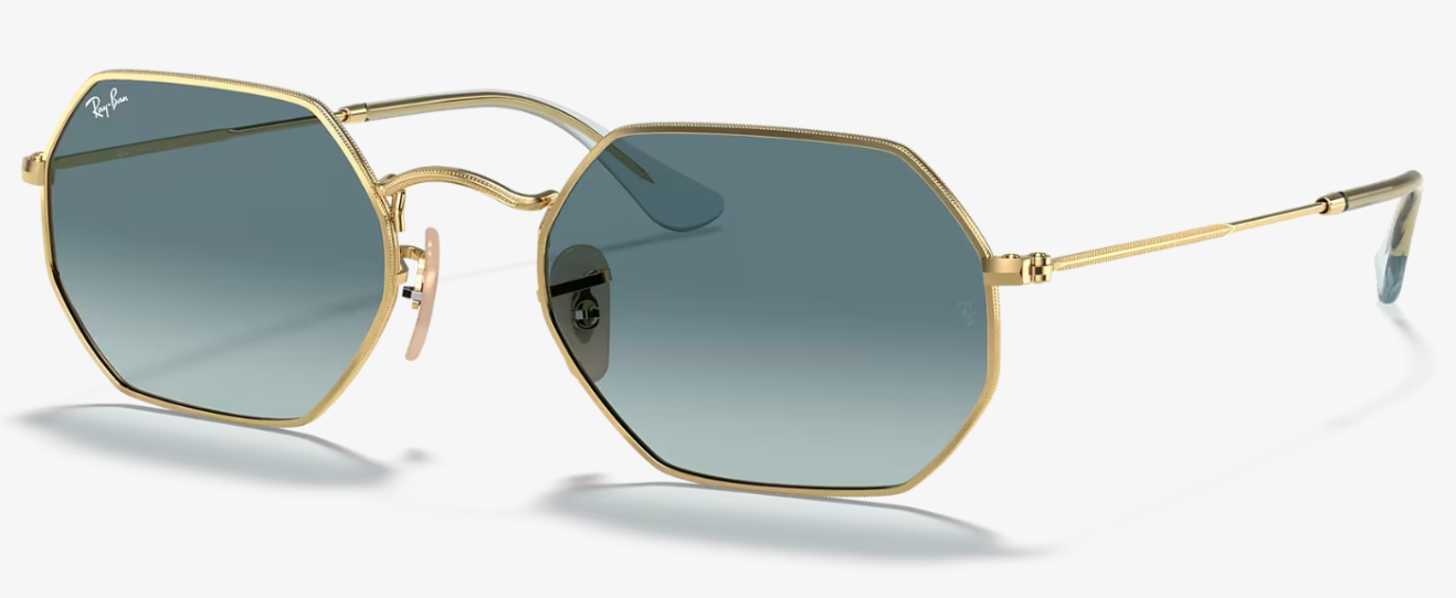 Model: RB3556N Octagonal Classic UPC: 8056597077507 Shape: Irregular Frame material: Metal Frame colour: Gold Lens material: Crystal Lens Technology: Gradient Lens color: Blue Gradient Lens height: 39.8