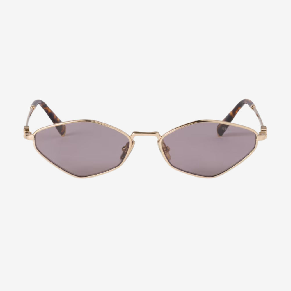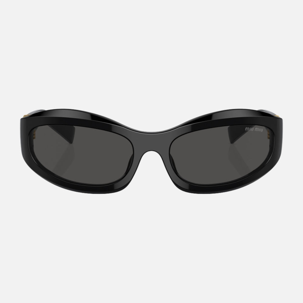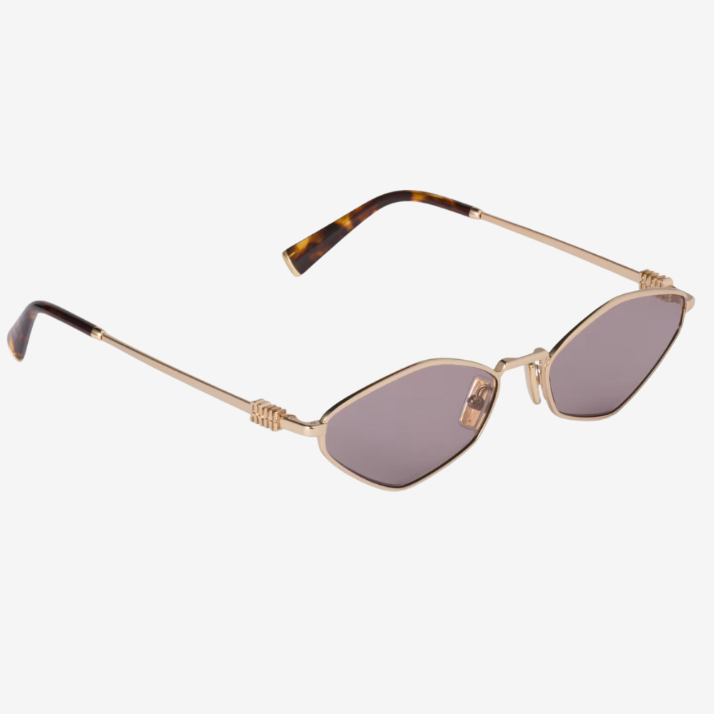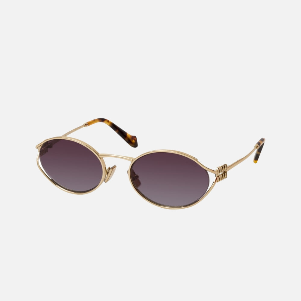 Brand: Miu Miu Collection: Sunglasses Gender: Women Season: Spring Summer 2024 Lens Color: Grigio scuro (Dark Grey) Frame Color: Oro pallido (Pale Gold) Frontal Color: Oro (Gold) Lens Material: Poliammide (Polyamide) Temples Material: Metal Front Material: Metal Shape: Irreg...