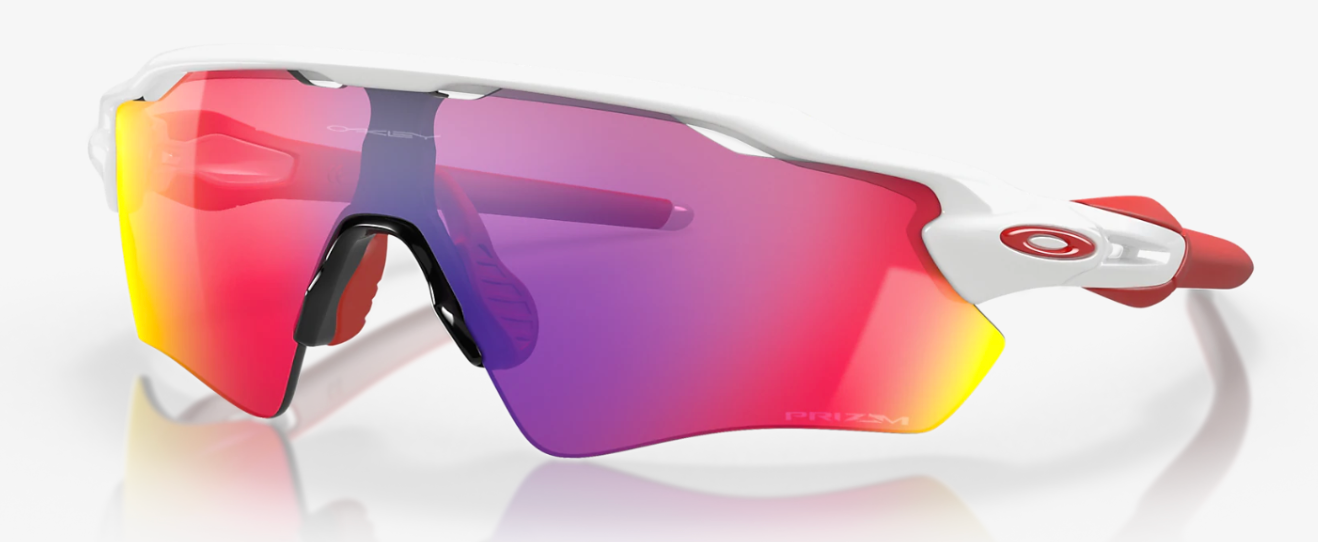 Model: OO9208 Radar® EV Path® Shape: Shield Frame material: O_matter Frame colour: Polished White Lens material: Polycarbonate Lens Technology: Prizm Lens color: Prizm Road Lens height: 50.5
