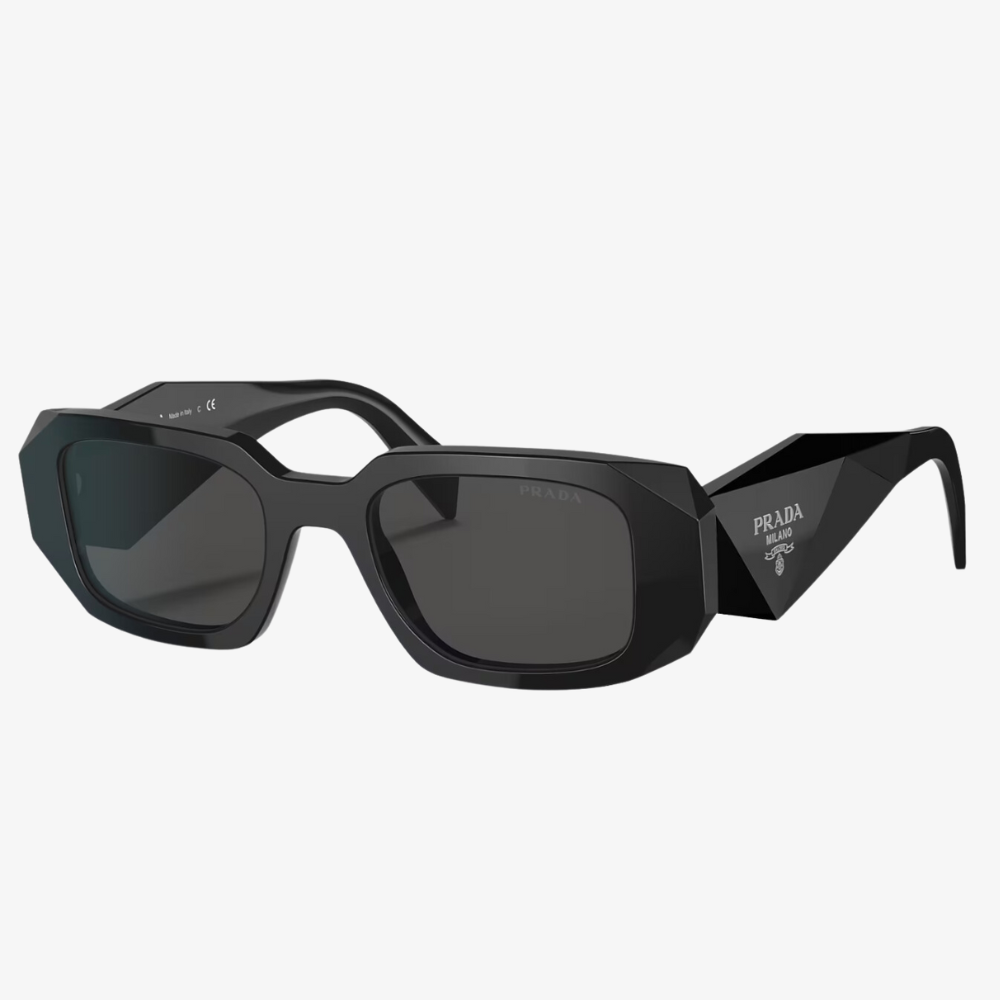 Model: PR 17W Shape: Rectangle Frame material: Acetate Frame colour: Black Lens material: Polyamide Lens Technology: Solid Color Lens color: Dark Grey Lens height: 35.5