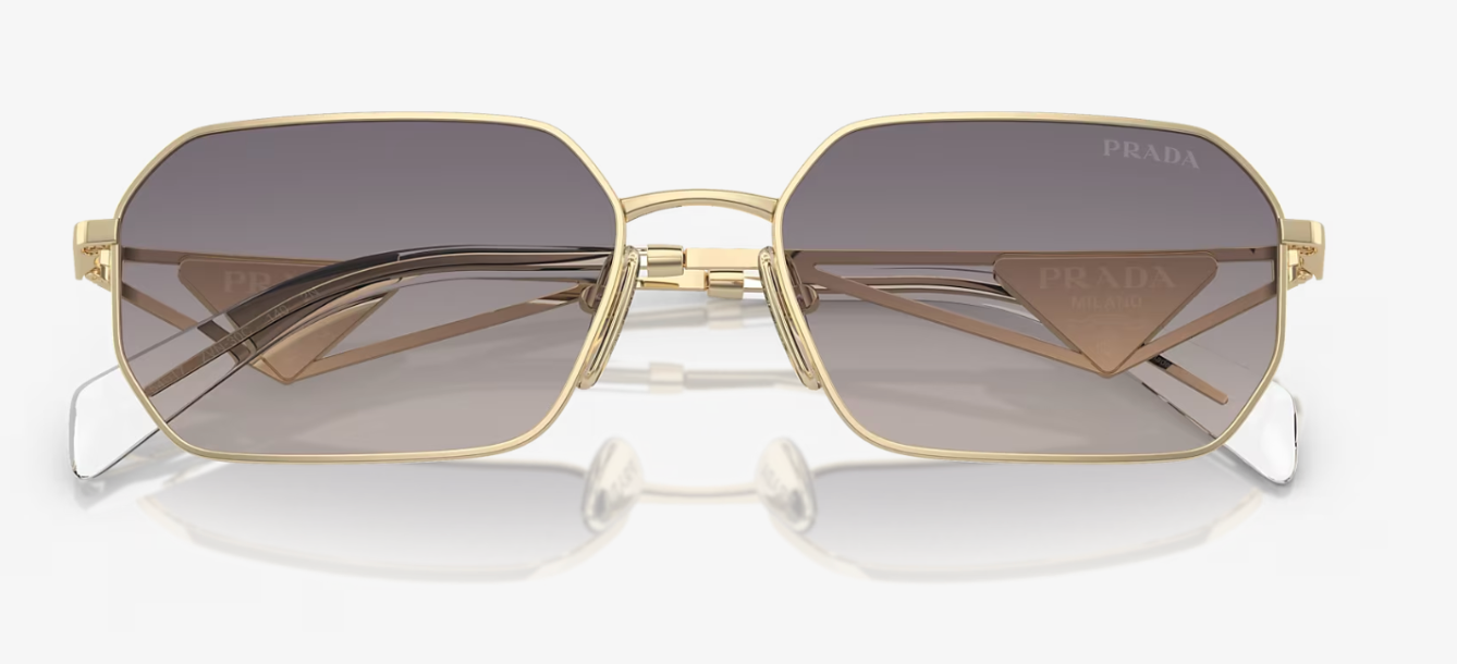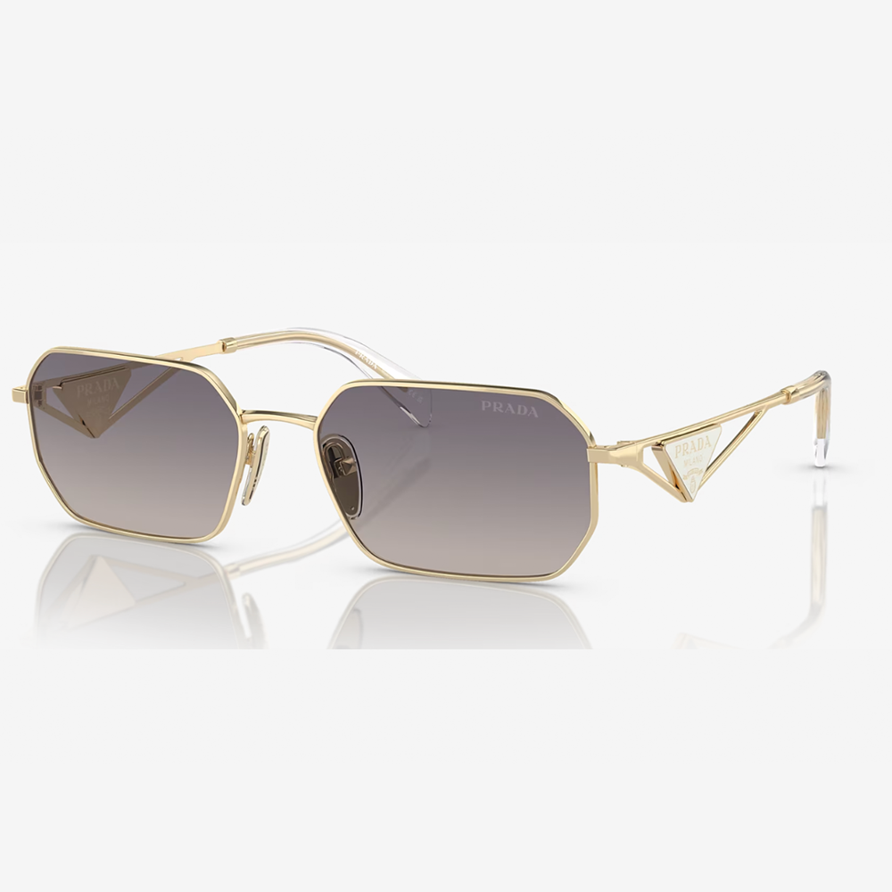 Model: PR A51S UPC: 8056597967501 Shape: Irregular Frame material: Metal Frame colour: Pale Gold Lens material: Polyamide Lens Technology: Gradient - Mirror Lens color: Brown Mirror Silver Gradient Lens height: 38.9